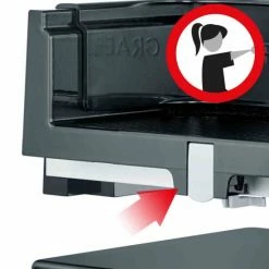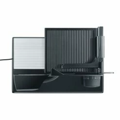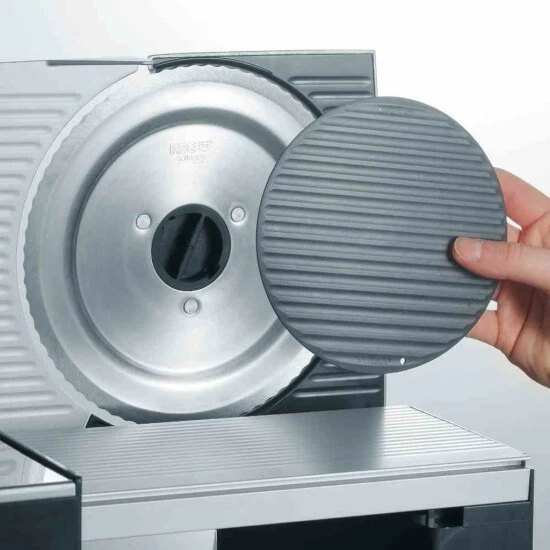 - Ein spezieller Safety-Verschluss ermöglicht es, das Messer zur Reinigung schnell und gefahrlos abzunehmen. Zudem lässt sich der Schlitten durch die Kindersicherung vor dem Messer verriegeln