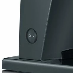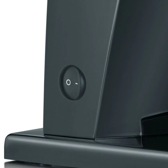 Metallmaschine, freitragend mit Kunststoffbodenplatte, Edelstahl-Wellenschliffmesser mit Safety-Verschluss für schnellen und sicheren Messerwechsel, leiser Eco Power Motor mit konstanter Drehzahl, Kunstofftablett, Kindersicherung, Messerabdeckplatte für optimale Schneidergebnisse, Kabelfach, Gewicht: 2,33 kg, 230 V, 45 – 170 Watt Lieferumfang: Maschine + Restehalter + Kunststofftablett + Anleitung