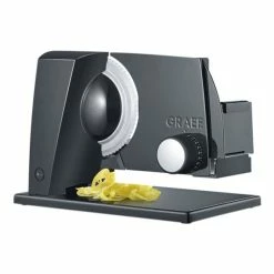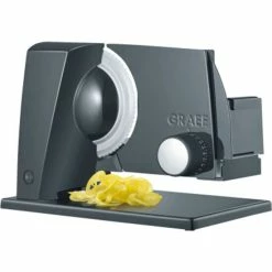 Der Einstieg in die Welt des feinen Schnitts – Die Allesschneider der Serie Sliced Kitchen SKS 100 von Graef eignen sich für jede Küche! Frisches Essen, schmackhaft und nachhaltig zubereitet. Schinken, Wurst oder Käse bleiben länger frisch, wenn man sie am Stück kauft und zuhause selbst aufschneidet. Ein Laib Brot, der erst bei Bedarf geschnitten wird, trocknet lange nicht so schnell. Auch Hartkäse, Wurst und Schinken halten sich am Stück deutlich länger als in Scheiben, die schon nach wenigen Tagen austrocknen und an Aromen verlieren. Robust, leicht bedienbar und sicher – Die Metallmaschinen überzeugen vor allem durch ihre Robustheit. Nicht zuletzt glänzen die Geräte der SKS 100-Serie durch ihre zeitlose Form. Auch die verschiedenen Farben, in den sie erhältlich sind, lassen keinen Designwunsch offen. Zudem kann zwischen zwei Linien gewählt werden, der SKS 100 mit Standfuß und der SKS 110 mit Bodenplatte. Der separat erhältliche MiniSlice Aufsatz (Art.Nr. 1051) ist die optimale Ergänzung zum Sliced Kitchen Allesschneider: Gemüse, Obst oder Salami, sogar kleine Kartoffeln oder Pilze werden in hauchdünne, ovale Scheibe geschnitten – für optimale Garzeiten beim Kochen.