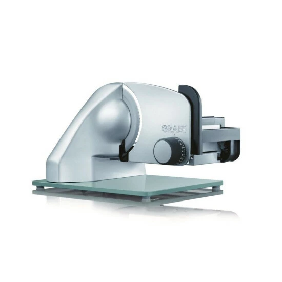 Dank des glatten Edelstahlmessers verwandeln Sie alle Lebensmittel im Handumdrehen in feine Scheiben aus purem Geschmack.Ganz gleich ob sie Brotkrusten, weichen Käse oder Schinken schneiden wollen, der Graef Allesschneider Classic C21 ist ein echter Allrounder für die anspruchsvolle Küche. Eine extra große Aluminium- oder Glasbodenplatte gibt dem Classic Allesschneider einen festen und sicheren Stand. Dank der Kombination aus durchzugsstarkem, flüsterleisem 170-Watt-Kondensatormotor und dem elektrolytisch, poliertem Edelstahlmesser wird das Schneidgut kraftvoll und präzise geschnitten. Technisch ausgestattet mit der ergonomischen Schlittenschaltung, sind die Allesschneider mit nur einer Hand bedienbar. Zudem wird intuitiv mit dem Daumen geschaltet, denn in dieser Position ist der Daumen optimal geschützt. Mit dem abnehmbaren Schlitten ist der Allesschneider von Graef einfach zu reinigen.