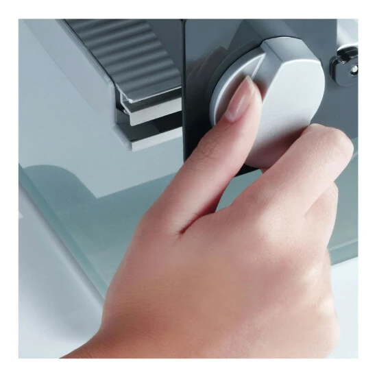 - Dank variabler Schnittstärkeneinstellung von 0 bis 20 mm bestimmen Sie selbst wie dick oder dünn die Scheiben sein sollen.