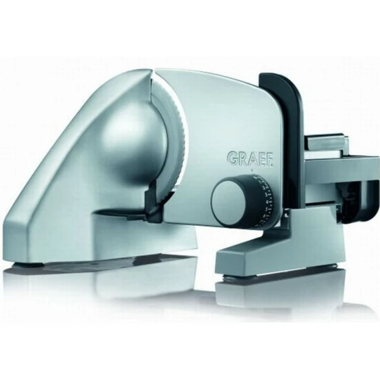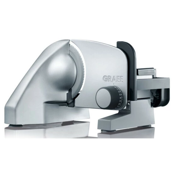 Allesschneider, Wellenschliffmesser aus Edelstahl mit 170 mm Durchmesser, glattes Edelstahlmesser mit 170 mm Durchmesser, Vollmetallausführung mit großen Standfüßen, Motorgehäuse Aluminium lackiert, flüsterleiser, durchzugsstarker Kondensatormotor, 170 Watt, wartungsfrei, Kunststoffschlitten mit Edelstahlauflage, Moment- und Dauerschalter, Schnittstärkeneinstellung 0 – 20 mm, Kindersicherung durch Schalterfeststellung, Kabelfach, Restehalter, Edelstahltablett, Diamant Messerschärfer, Farbe: Silber