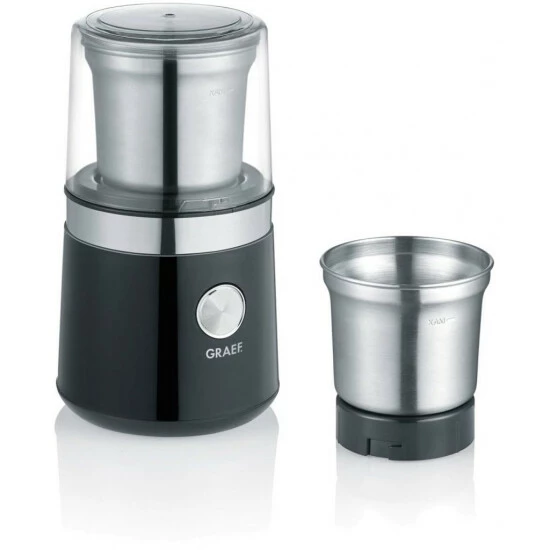 - 2-flügeliges Messer – ist ideal für trockene Zutaten wie Kaffeebohnen und Co.
