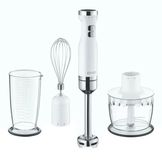 Graef HB501EU Stabmixer weiß Pürierstab Zerkleinerer-Behälter Schneebesen 800 Watt