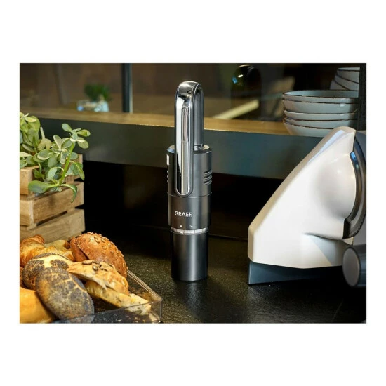 In einer Küche, in der gekocht, gelacht und gelebt wird, kann es auch schon mal entsprechend aussehen. Der akkubetriebene Graef KrümelChef entfernt Schmutz von Küchenoberflächen, Esstischen oder Stuhlpolstern im Nu und ist der ideale Helfer nach einem gemeinsamen Familienfrühstück oder Abendbrot. Der kompakte Graef Krümelsauger „KrümelChef“ KC502 sorgt für saubere Arbeitsflächen in der Küche. Das solide, ergonomische Gehäuse im Graef Family Look hat ein geringes Gewicht von nur 680 g und sorgt so für leichtes, ermüdungsfreies Arbeiten. Der Krümelchef arbeitet beutellos und umweltschonend mit einem herausnehmbaren 2-Fach Filtersystem (
