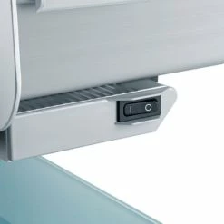 - Ausstattung: Kabelfach, Ein-/ Ausschalter, Abnehmbare Messerabdeckplatte aus Edelstahl, Schnittstärkeneinstellung 0 – 20 mm, Massiv bruchsichere Glasbodenplatte
