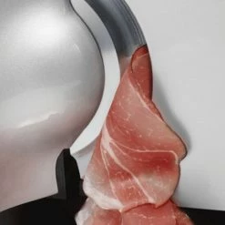 Das glatte Vollstahlmesser mit Hohlschliff ermöglicht das Schneiden von hauchdünnen Scheiben.