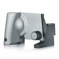 Der SKS 300 ist mit einem rutschfesten Standfuß ausgestattet. Sein energiesparender Motor Graef Eco Power Motion arbeitet in der Spitze mit bis zu 170 Watt Leistung und treibt dabei das 170 mm große Messer an. Dank Safety-Verschluss lassen sich die Messerscheiben sicher abnehmen. Dieser GRAEF Allesschneider arbeitet mit einem Universal-Wellenschliffmesser aus Edelstahl. Nachwuchsköche werden durch die Kindersicherung „Clip“ geschützt.