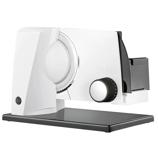 Der Einstieg in die Welt des feinen Schnitts – Die Allesschneider der Serie Sliced Kitchen SKS 100 von Graef eignen sich für jede Küche! Frisches Essen, schmackhaft und nachhaltig zubereitet. Schinken, Wurst oder Käse bleiben länger frisch, wenn man sie am Stück kauft und zuhause selbst aufschneidet. Ein Laib Brot, der erst bei Bedarf geschnitten wird, trocknet lange nicht so schnell. Auch Hartkäse, Wurst und Schinken halten sich am Stück deutlich länger als in Scheiben, die schon nach wenigen Tagen austrocknen und an Aromen verlieren. Robust, leicht bedienbar und sicher – Die Metallmaschinen überzeugen vor allem durch ihre Robustheit. Nicht zuletzt glänzen die Geräte der SKS 100-Serie durch ihre zeitlose Form. Auch die verschiedenen Farben, in den sie erhältlich sind, lassen keinen Designwunsch offen. Zudem kann zwischen zwei Linien gewählt werden, der SKS 100 mit Standfuß und der SKS 110 mit Bodenplatte. Der separat erhältliche MiniSlice Aufsatz (Art.Nr. 1051) ist die optimale Ergänzung zum Sliced Kitchen Allesschneider: Gemüse, Obst oder Salami, sogar kleine Kartoffeln oder Pilze werden in hauchdünne, ovale Scheibe geschnitten – für optimale Garzeiten beim Kochen.