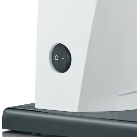 Metallmaschine, freitragend mit Kunststoffbodenplatte, Edelstahl-Wellenschliffmesser mit Safety-Verschluss für schnellen und sicheren Messerwechsel, leiser Eco Power Motor mit konstanter Drehzahl, Kunstofftablett, Kindersicherung, Messerabdeckplatte für optimale Schneidergebnisse, Kabelfach, Gewicht: 2,33 kg, 230 V, 45 – 170 Watt