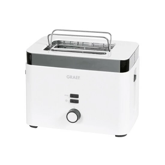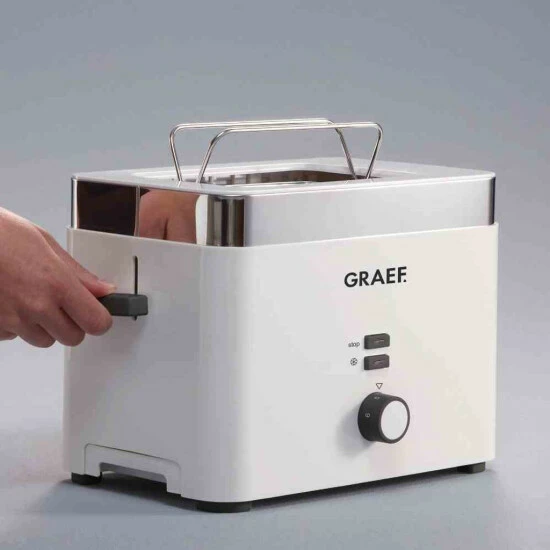 In edlem Weiß: Der neue, kompakte 2-Schlitz Toaster TO 61 von Graef bräunt Ihnen Toastscheiben im Handumdrehen – auch die großen American Sandwiches.
