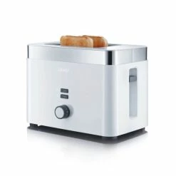 2-Scheiben-Toaster, Brotscheibenzentrierung, Auftaufunktion, Brothebefunktion zur leichten Entnahme der Brotscheiben, Stopptaste, Sicherheitsabschaltung bei Verklemmen einer Brotscheibe, wärmeisoliertes Gehäuse, Brötchenaufsatz, integriert, Krümelschublade, 1.000 Watt