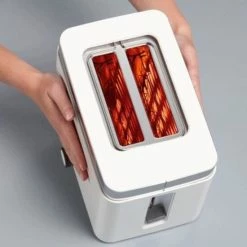 Das Kunstoffgehäuse des Toasters ist wärmeisoliertes und entspricht der neuen Wärmeverordnung.