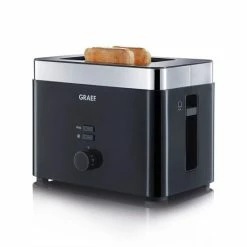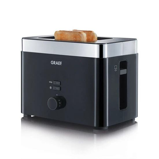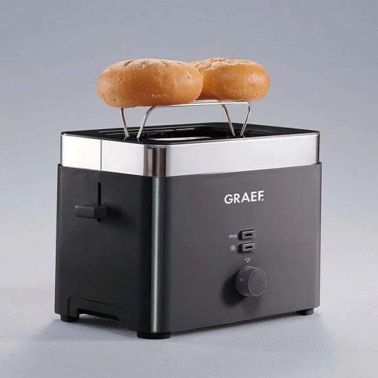 Der Toastautomat TO 62 von Graef für 2 Toasts mit integriertem Brötchenaufsatz sollte an keinem Frühstücksstisch fehlen. Er ist unter anderem mit Auftaufunktion ausgestattet und der Bräunungsgrad kann präzise eingestellt werden.
