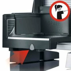 – Material: Vollmetall – Mit großem Standfuß – Großer Schlitten mit Kunststoffauflage – Kindersicherung – Kabelfach – Restehalter – Kunststofftablett – Automatische Abschaltung nach 10 Min. – Überlastungsschutz – Intelligentes Motormanagement – Produkt aus deutscher Fertigung – Farbe: Silber