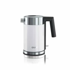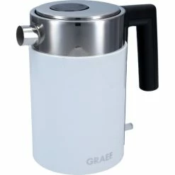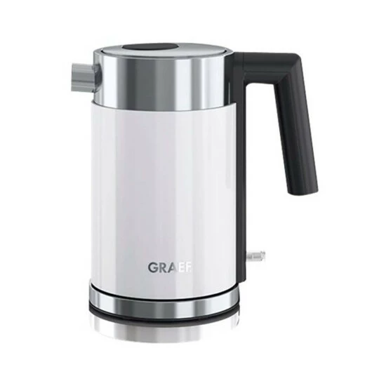 Der Graef Wasserkocher WK401 weiß hat eine Leistung von 2015 Watt. Der modische Wasserkocher ist aus Edelstahl gefertigt und verfügt über ein Fassungsvermögen von 1,0 l. Die Temperatur kann nicht manuell eingestellt werden, jedoch besitzt das Modell einen Überhitzungsschutz. Das auf einem 360° Sockel stehende Gerät schaltet sich nach Erreichen der Höchsttemperatur selber ab oder kann manuell ausgeschaltet werden. Trockengeh- und Überhitzungsschutz